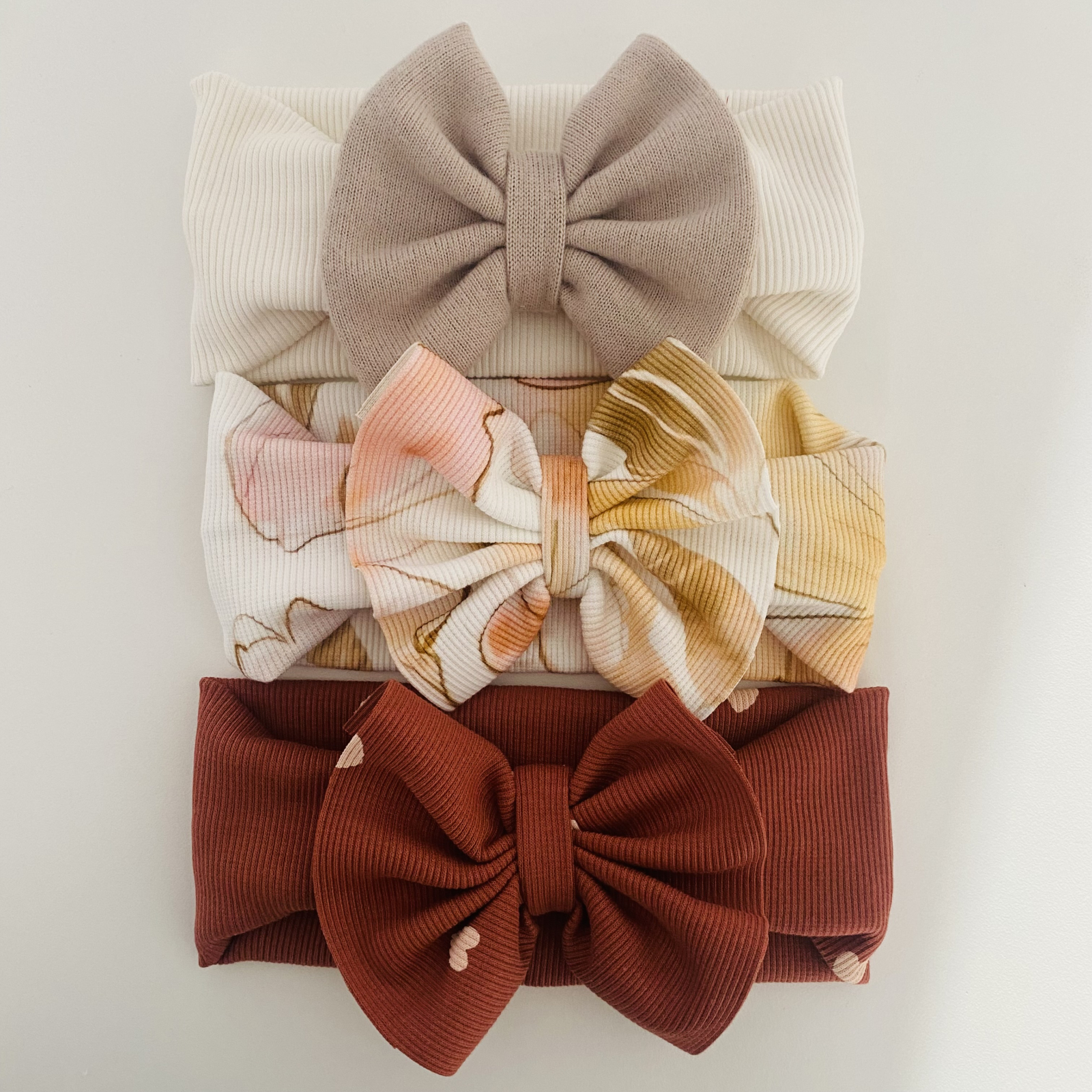 Set compus din 3 bentite: Rania alb/bej, Luna alb imprimeu, Luna maro imprimeu